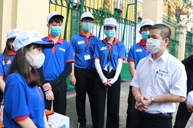 Ông Trịnh Văn Hào, Giám đốc marketing Tập đoàn Thiên Long ,dặn dò sinh viên tình nguyện lưu ý việc phòng chống dịch bệnh Covid-19