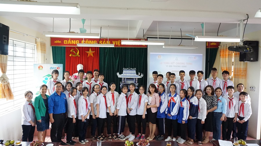Các em học sinh trường THCS Nguyễn Tri Phương nhận học bổng Vì Mái Trường Xanh từ chương trình