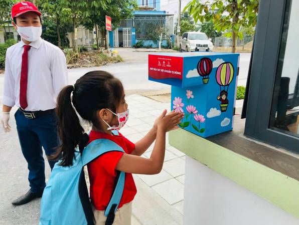 Thầy giáo Dương Đình Quân chia sẻ: “Khi chưa có máy rửa tay diệt khuẩn tự động sử dụng công nghệ cảm biến siêu âm, tại trường phải bố trí 3 nhân viên bảo vệ trực tiếp phun dung dịch rửa tay cho học sinh. Việc này vừa tốn thời gian, tốn công bởi mỗi cổng phải bố trí thêm 1 nhân viên y tế đo thân nhiệt và không an toàn do nhân viên bảo vệ phải đứng tiếp xúc gần với nhiều học sinh.