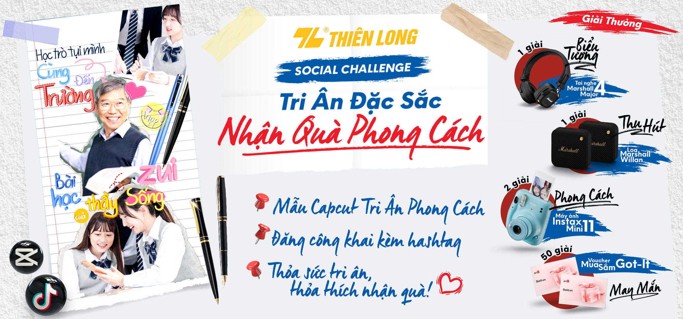 - Giải Biểu tượng (01 giải): 01 Người tham gia với bài dự thi có clip ý nghĩa, sáng tạo, truyền tải tinh thần tri ân sâu sắc do BTC lựa chọn sẽ nhận được Tai nghe Marshall Major 4 trị giá 3,490,000 đồng. Bài dự thi phải có sự góp mặt của sản phẩm Bút Thiên Long.