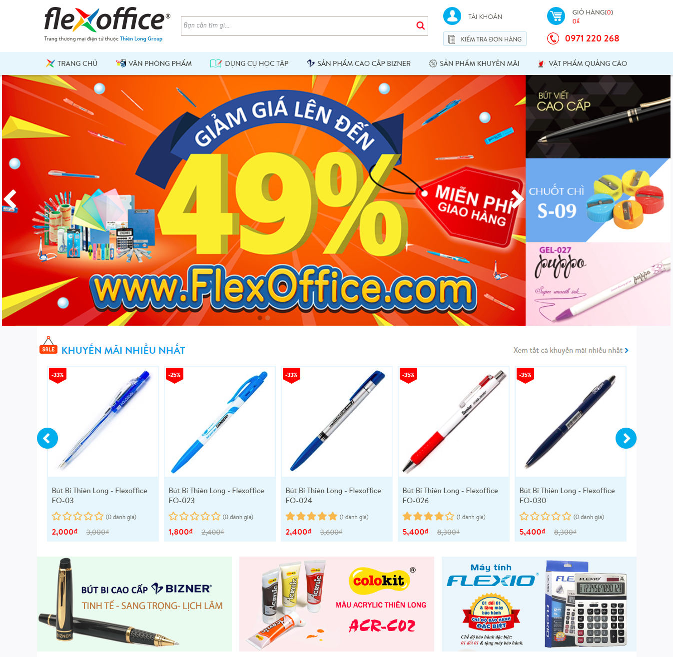 Trang thương mại điện tử www.flexoffice.com cung cấp các mặt hàng cho nhiều đối tượng khách hàng khác nhau, từ học sinh, sinh viên, giới văn phòng, từ sản phẩm cao cấp cho đến các loại bút viết phổ thông. Tất cả đều được Tập đoàn Thiên Long nghiên cứu, sản xuất và phân phối.
