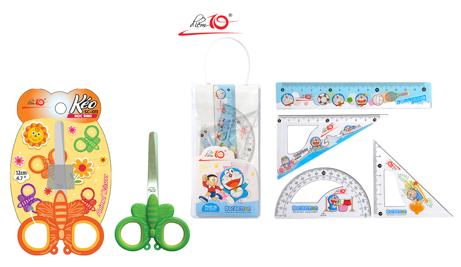 Dòng sản phẩm Dụng cụ học tập Điểm 10 của thương hiệu Thiên Long bao gồm các sản phẩm: Bút máy, Bút chì, Thước kẻ, Compa, Tập vở, Bảng học sinh, Gôm tẩy,... Các sản phẩm Điểm 10 đều được thiết kế theo quy chuẩn của Bộ Giáo dục. Ngoài các sản phẩm học tập đa dạng, Dòng sản phẩm Dụng cụ học tập Điểm 10 còn có bộ sưu tập Bút viết chữ đẹp Điểm 10 bao gồm Bút máy và Bút luyện chữ đẹp (bút nét thanh nét đậm) được nhiều học sinh và phụ huynh yêu thích.