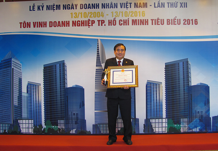 Đại diện Tập đoàn Thiên Long, ông Bùi Văn Huống – Phó Tổng Giám đốc Tập đoàn Thiên Long nhận giải thưởng “Doanh nghiệp tiêu biểu TP.HCM năm 2016”