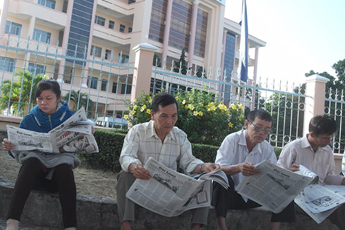 ( Phụ huynh đọc báo chờ con thi ẢNH: C.T.V)