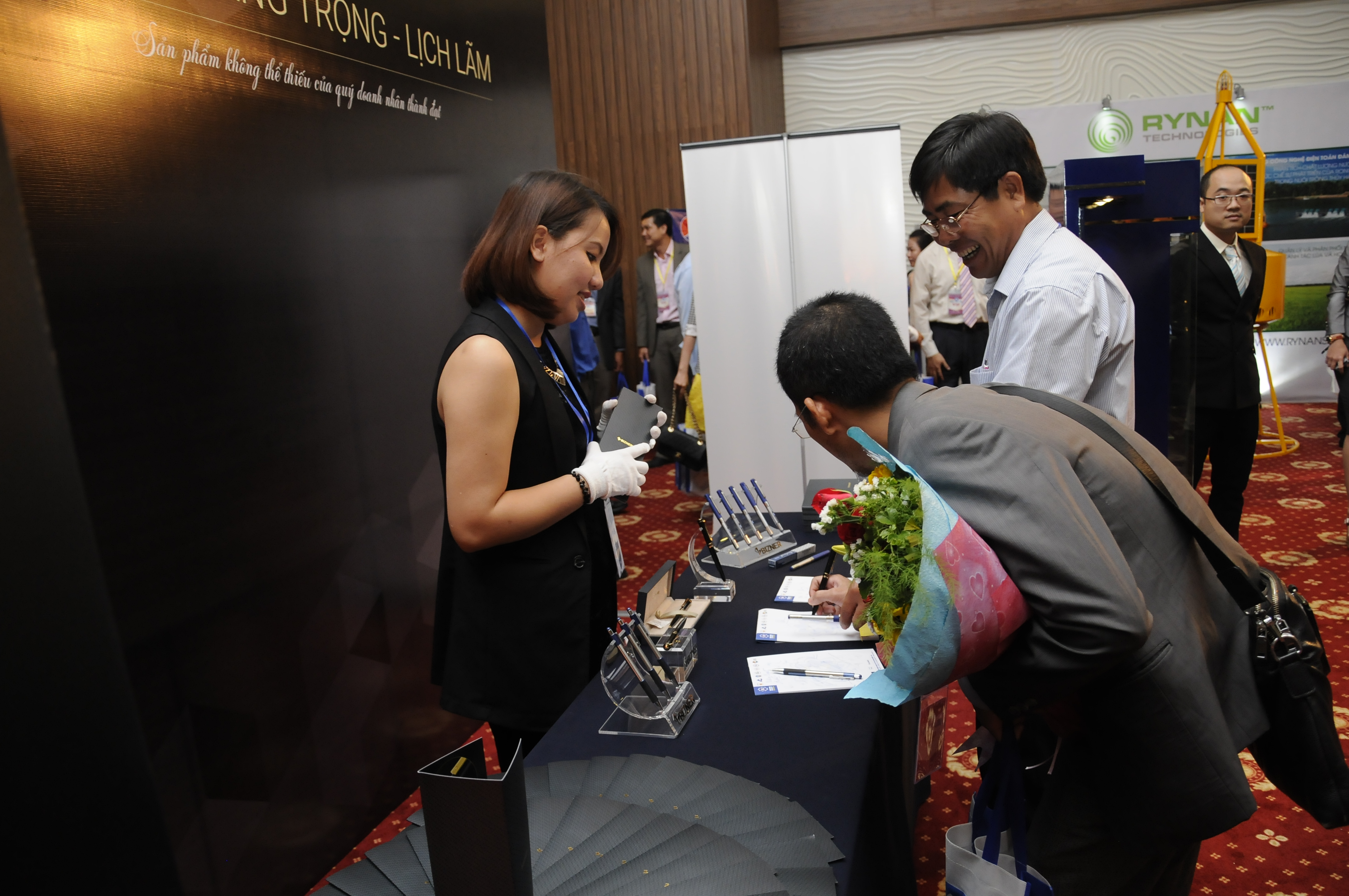 Nhờ thiết kế tinh tế và ấn tượng, gian hàng giới thiệu sản phẩm bút cao cấp Bizner trở thành tâm điểm của triển lãm và nhận được sự quan tâm tìm hiểu của nhiều khách hàng.