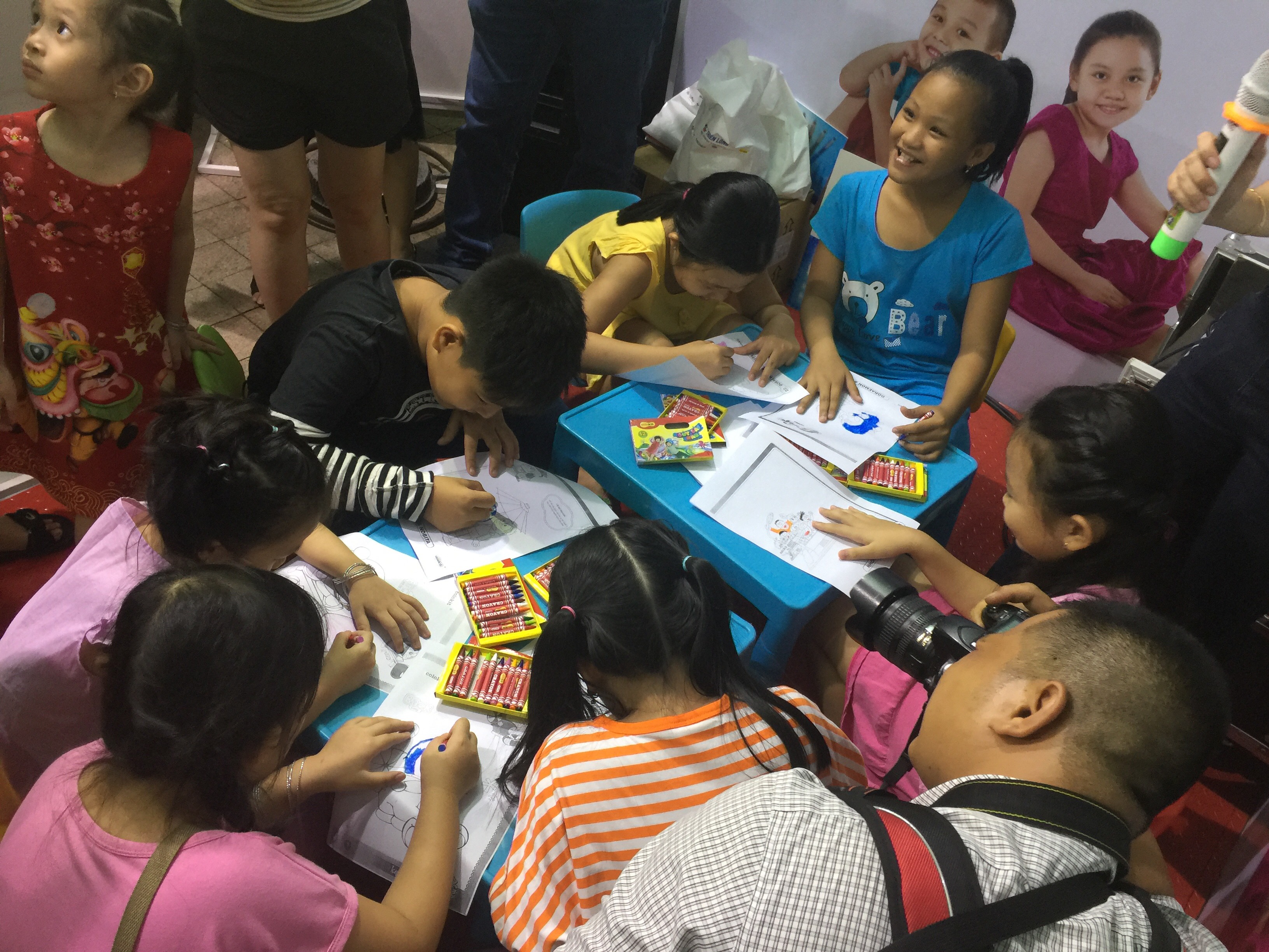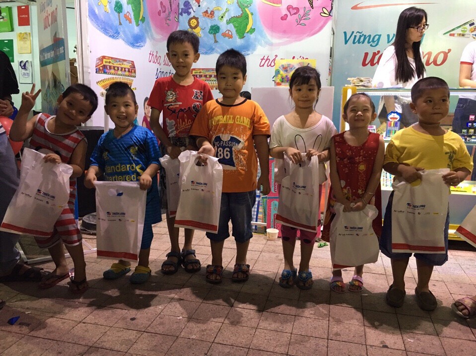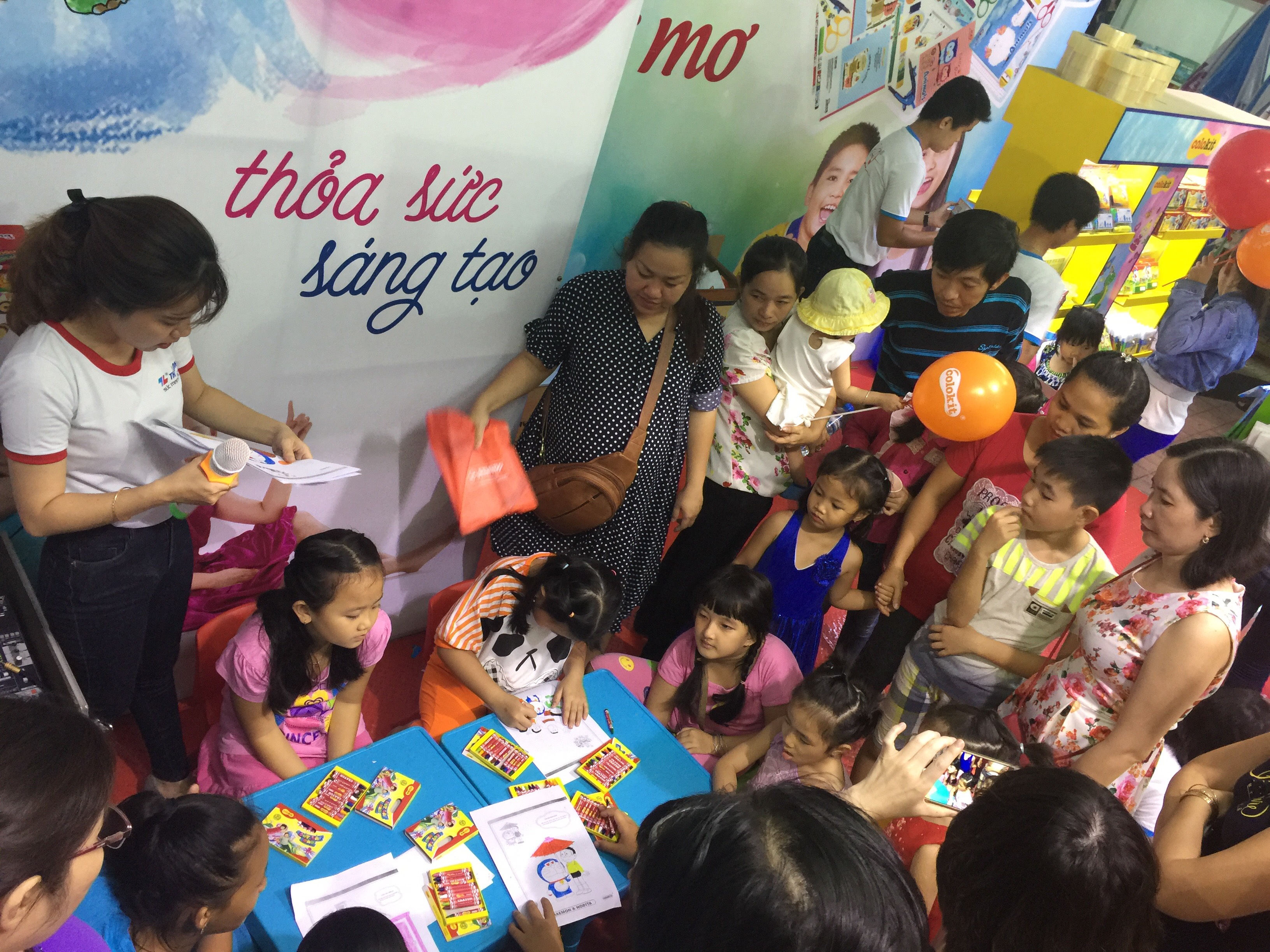 Đông đảo các em nhỏ đến thăm quan và hòa mình cùng nhiều trò chơi hấp dẫn của gian hàng Thiên Long.