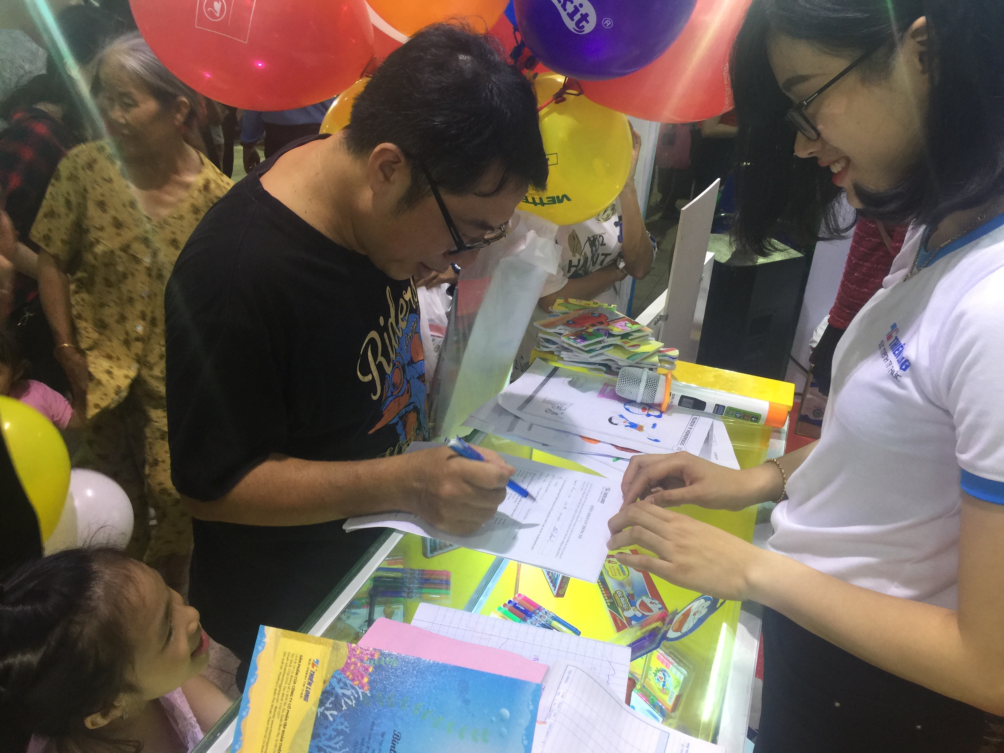 Tại hội chợ lần này, khi mua sắm các sản phẩm của Thiên Long với hóa đơn trên 50.000 đồng, các bậc phụ huynh sẽ được tham gia “Vòng quay may mắn” với cơ hội trúng thưởng 100%.