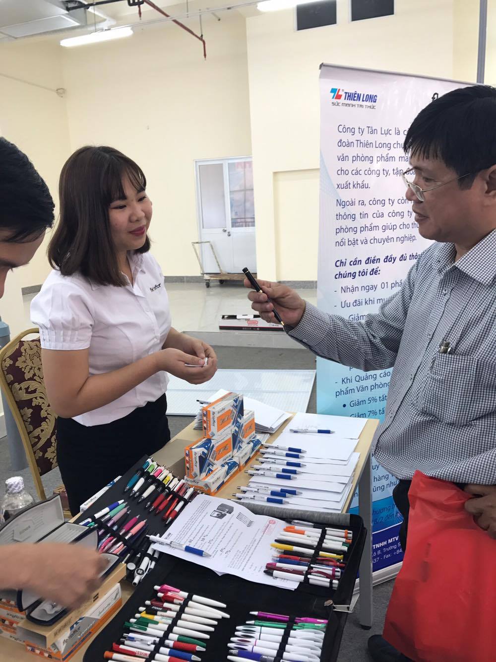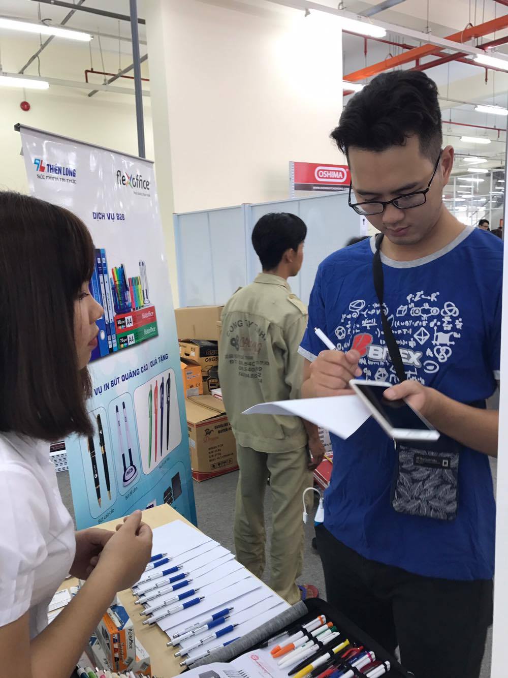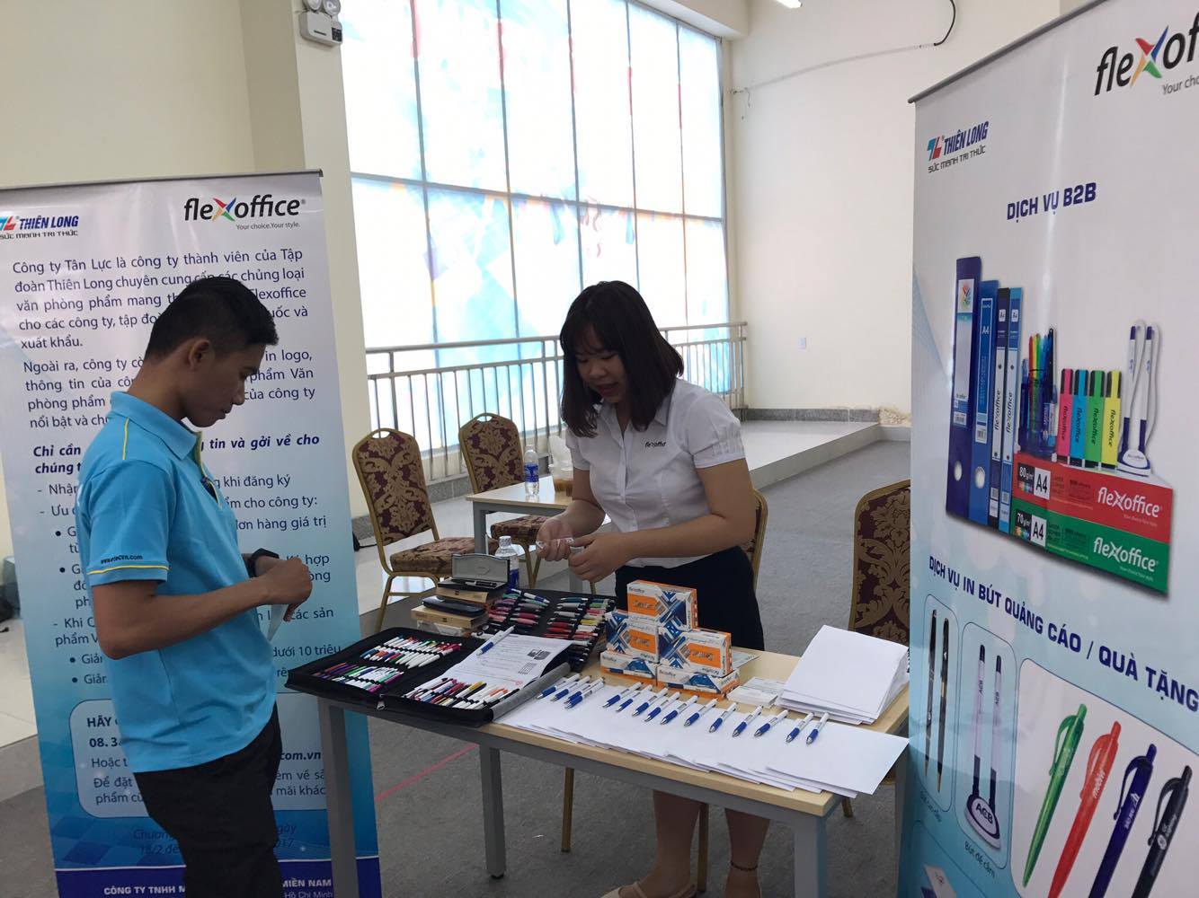 Tại hội chợ lần này, Thiên Long tìm kiếm các khách hàng là các doanh nghiệp, trường học. Thiên Long trưng bày và giới thiệu hơn 20 loại sản phẩm văn phòng phẩm của nhãn hàng FlexOffice. Đặc biệt, Thiên Long còn tư vấn các thông tin cần thiết cho các doanh nghiệp có nhu cầu in ấn logo/thông tin lên các sản phẩm của Thiên Long như bút bi, bút chì, bút dạ quang…
