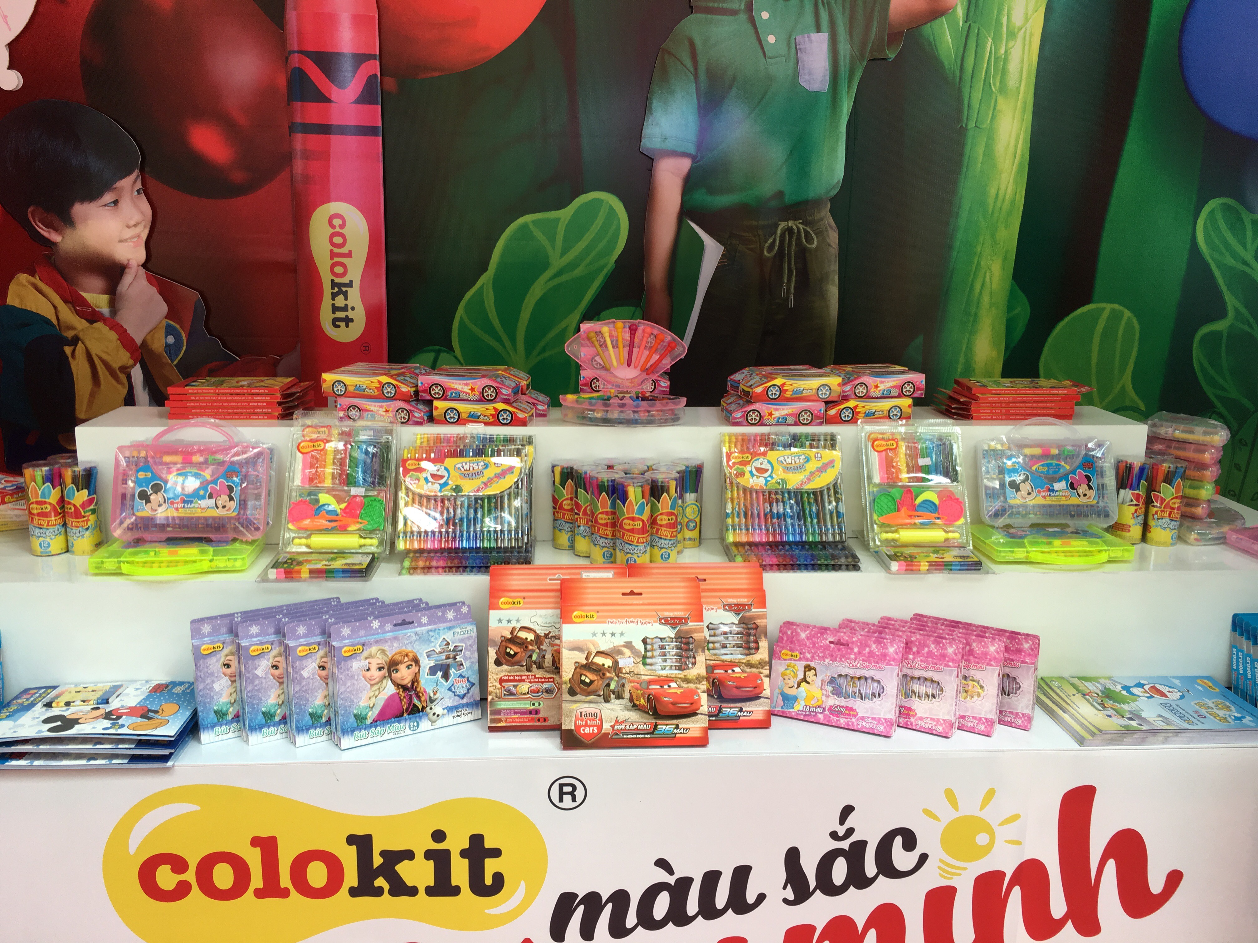 Khu vực trưng bày năm nay nằm ở vị trí khu D1 ( phía bên cổng Điện Biên Phủ) với diện tích gian hàng là 15mx3m. Gian hàng được chia nhỏ thành khu vực cho 3 dòng sản phẩm: Dụng cụ Mỹ thuật Colokit, Dụng cụ Học sinh Điểm 10, Dụng cụ văn phòng FlexOffice. Mỗi khu vực được thiết kế phù hợp để truyền tải thông điệp ý nghĩa của từng dòng sản phẩm như COLOKIT - Màu sắc thông minh, Điểm 10 – Sẵn sàng học tốt và FLEXOFFICE - Sản phẩm cho giới văn phòng.