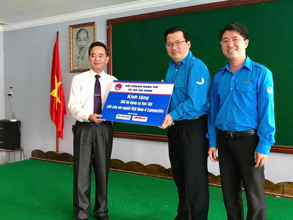 Trong chuyến đi thăm, Hội doanh nhân trẻ TP.HCM đã có dịp gặp gỡ và thăm hỏi các học sinh Việt kiều nghèo tại trường tiểu học Khmer Việt Nam Samaki tại thủ đô Phnom Penh (Campuchia). Hiện nay, trường học này có 120 học sinh đang học từ lớp 1 đến lớp 5. Các em học theo chương trình của Bộ Giáo Dục Đào Tạo Việt Nam.