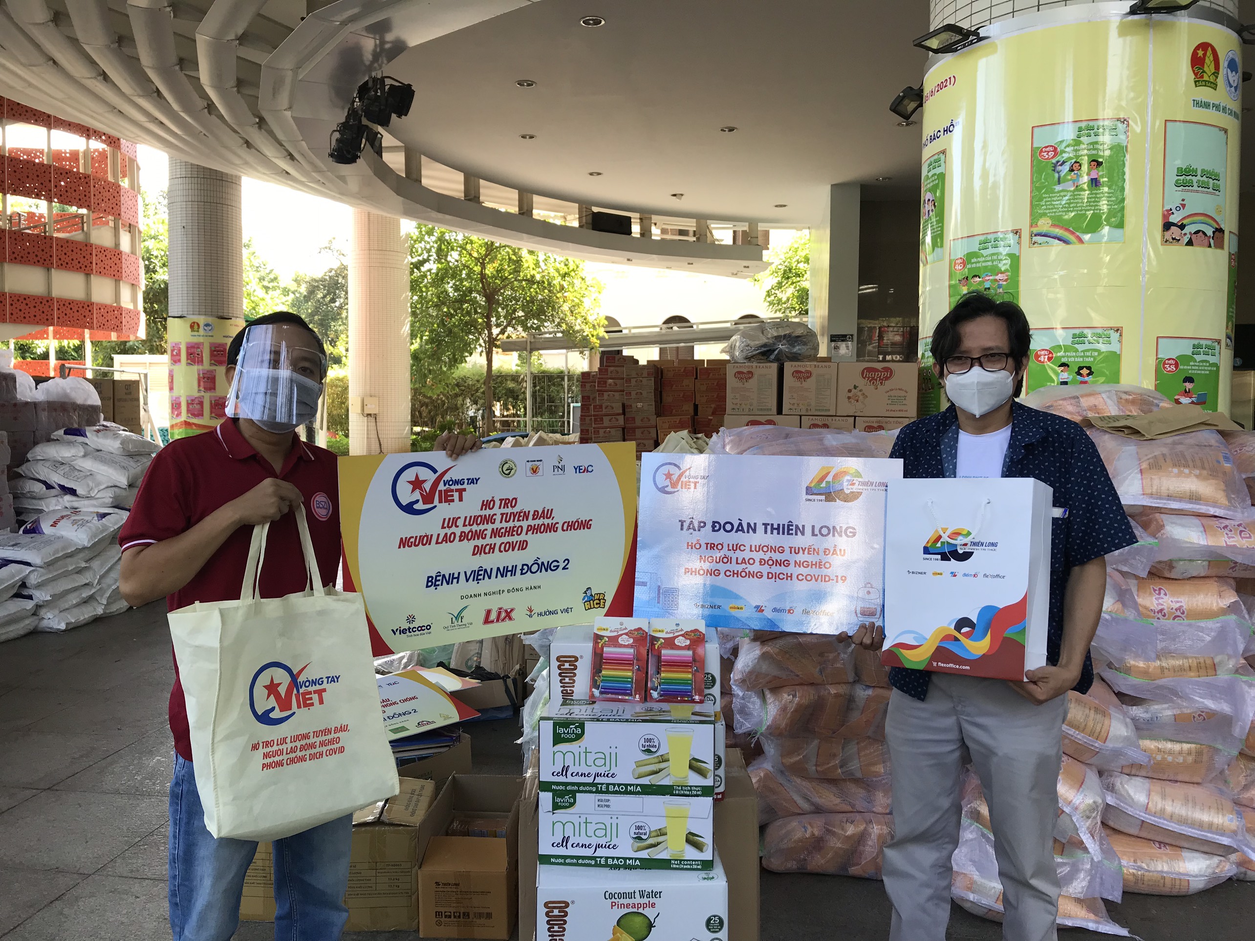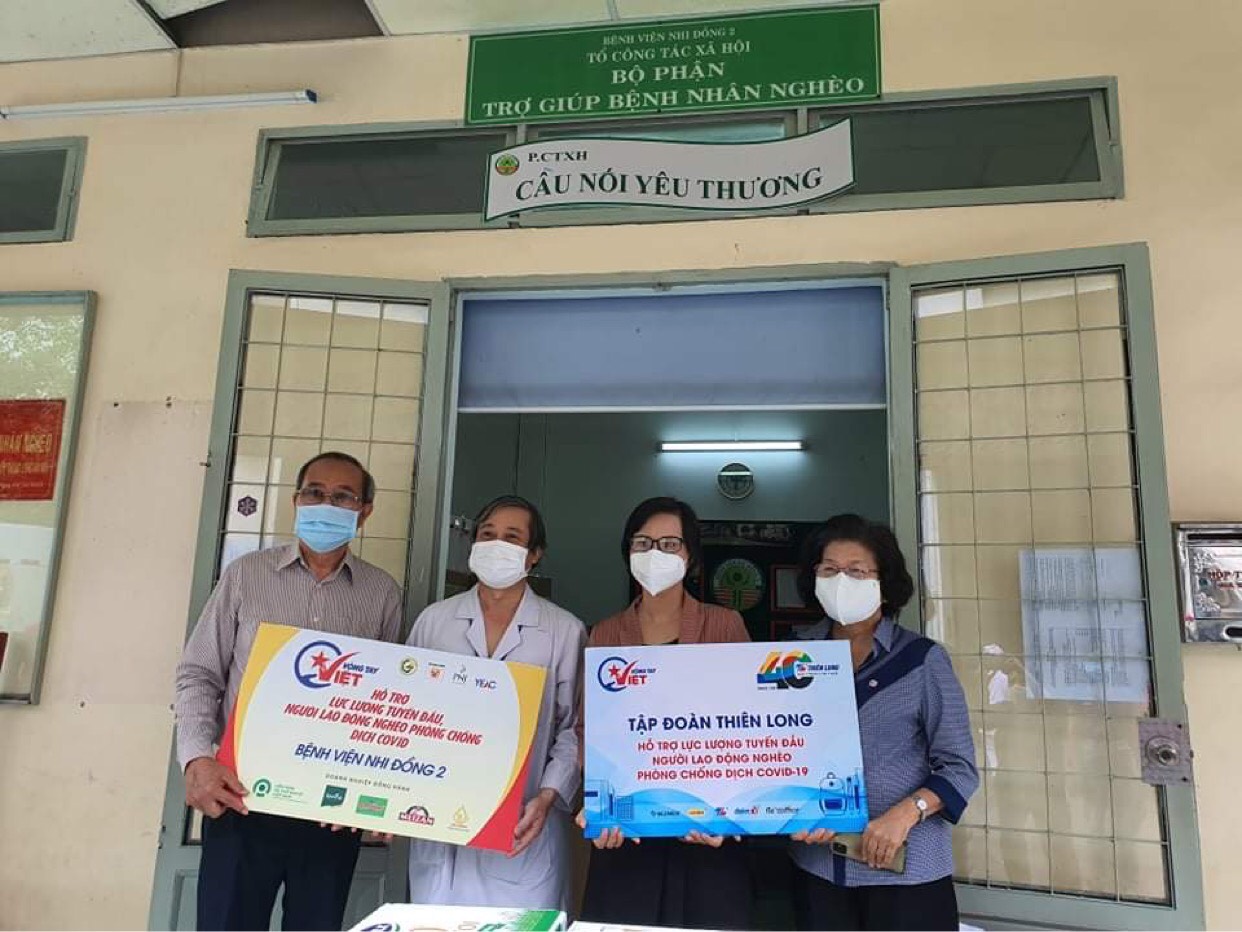 Sáng ngày 6/7, tập đoàn Thiên Long phối hợp với Hội Doanh nghiệp Hàng Việt Nam chất lượng cao, cùng nhiều đơn vị khác trong Ban tổ chức đã đến trao 500 phần quà cho các y bác sĩ tại Bệnh viện Nhi đồng 2 và những người lao động bị mất việc tại Quận 12, với tổng trị giá quà tặng hơn 25 triệu đồng. Hoạt động này nằm trong khuôn khổ chương trình thiện nguyện “Vòng tay Việt” do Hội Doanh nghiệp Hàng Việt Nam chất lượng cao phát động vào cuối tháng 6/2021.