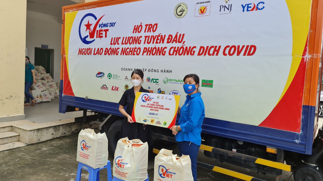 Những chiếc xe lưu động của chương trình “Vòng tay Việt”đã mang quà hỗ trợ đến tận các bệnh viện, khu cách ly, khu phong toả