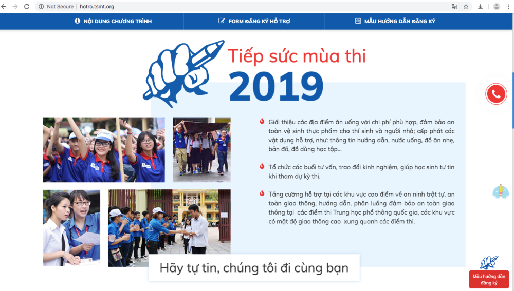 Các thí sinh của kỳ thi THPT Quốc gia 2019 muốn được hỗ trợ có thể đăng ký tại kênh http://hotro.tsmt.org/