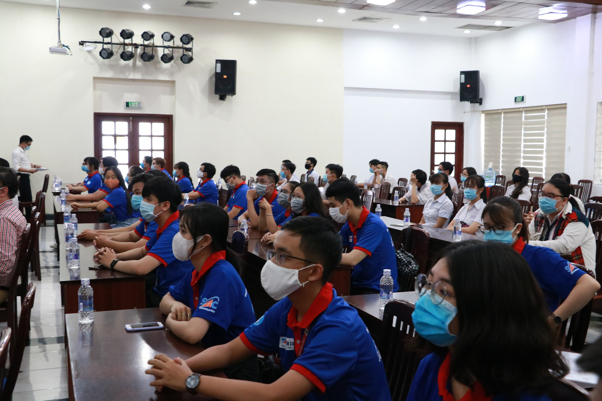 Các bạn học sinh, sinh viên tình nguyện có mặt tại lễ tổng kết không quên đeo khẩu trang theo quy định của Bộ Y tế
