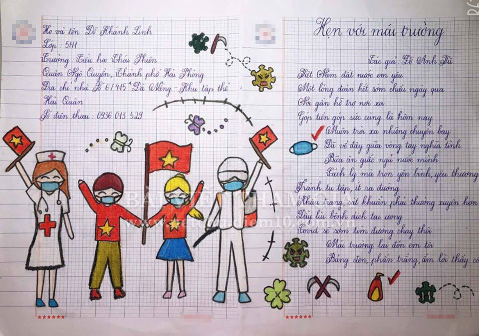 Bài viết: Hẹn với mái trường (em Đỗ Khánh Linh, lớp 5H1, tiểu học Thái Phiên, Ngô Quyền, Hải Phòng) toát lên niềm tin và mong mỏi toàn dân đoàn kết chiến thắng dịch bệnh để các em có thể trở lại mái trường vào một ngày không xa