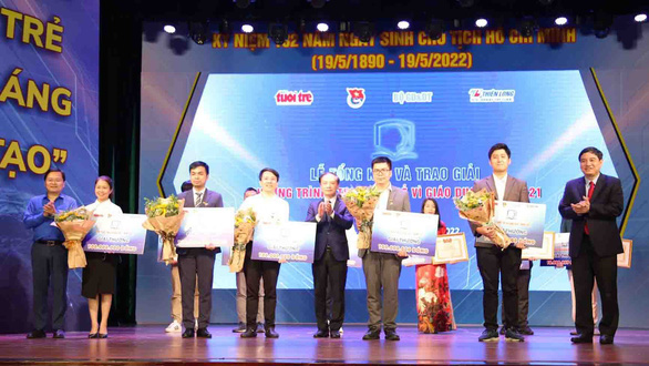 Trao giải thưởng cho 5 công trình xuất sắc nhất của chương trình “Tri thức trẻ vì giáo dục” năm 2022 - Ảnh: THANH HẢI