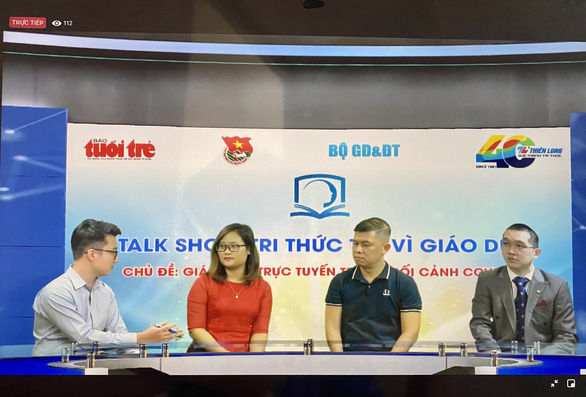 Talkshow "Giáo dục trực tuyến trong bối cảnh dịch COVID-19" diễn ra theo hình thức trực tuyến sáng nay - Ảnh: HÀ THANH chụp lại