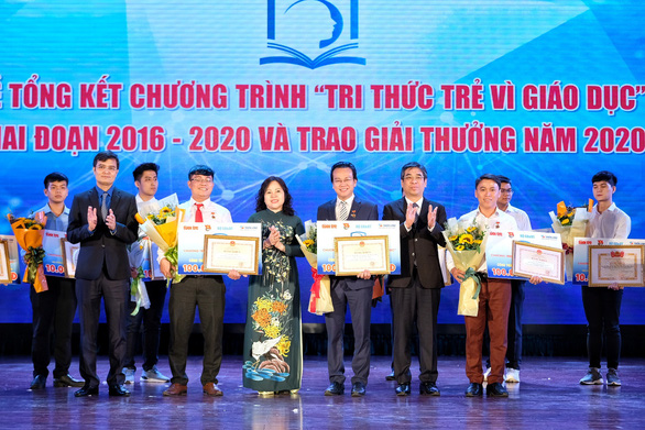 Trao giải thưởng Chương trình Tri thức trẻ vì giáo dục cho 3 công trình xuất sắc nhất năm 2020 - Ảnh: NAM TRẦN