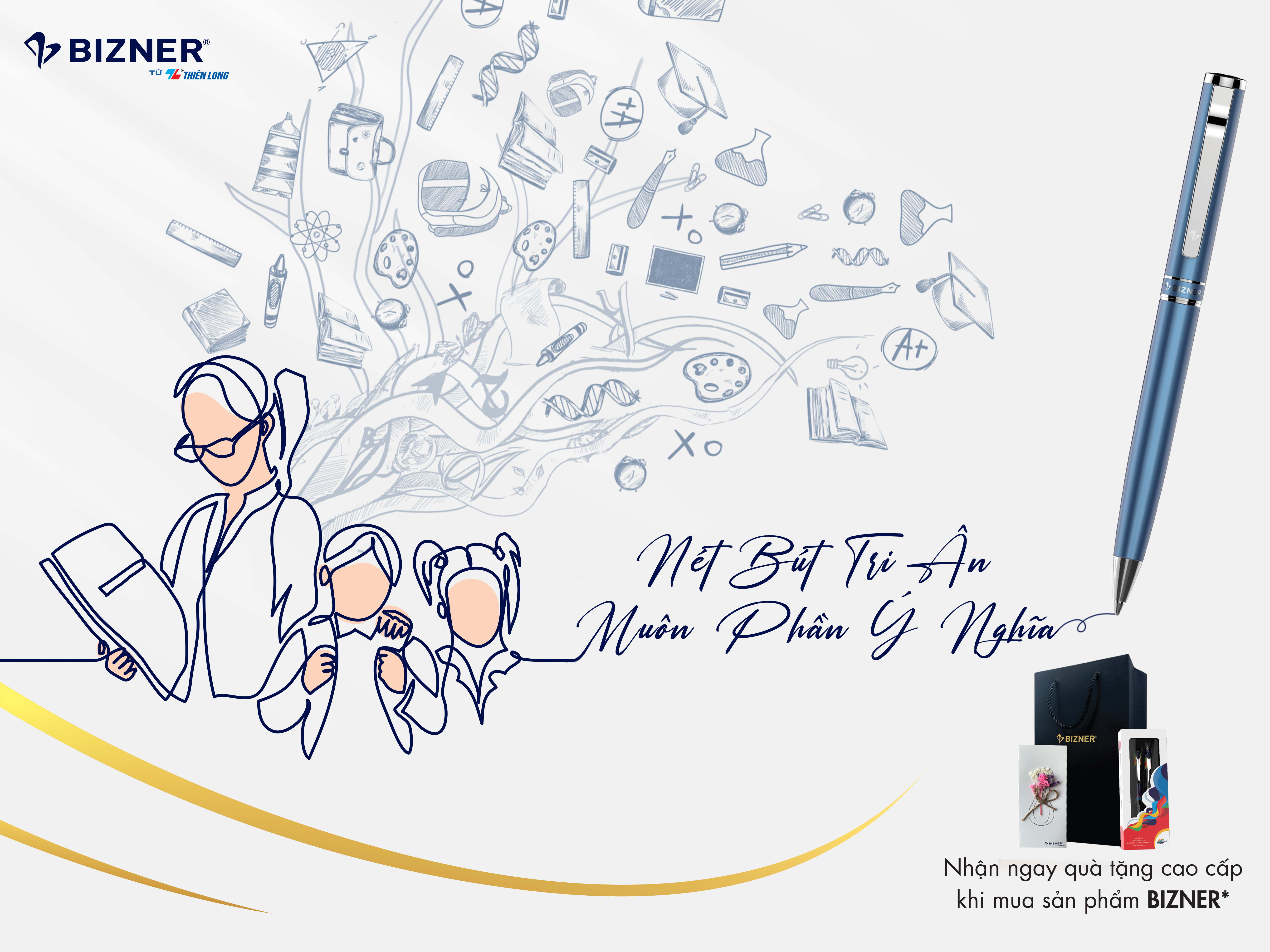 Là một thương hiệu bút cao cấp luôn đồng hành cùng ngày nhà giáo Việt Nam qua các năm, Bizner thấu hiểu được nỗi lòng của thầy cô cùng tâm tư của người trò và là cầu nối để tình thầy trò luôn bền chặt. Năm nay cũng không ngoại lệ, nhân kỷ niệm 40 năm Ngày Nhà giáo Việt Nam, thương hiệu bút cao cấp Bizner thông qua chương trình "Mùa Tri Ân" ra mắt các bộ quà tặng thay cho lời cảm ơn sâu sắc đến tất cả những người thầy đã dìu dắt chúng ta đến được ngày hôm nay. Được sản xuất từ vật liệu cao cấp với các chi tiết mạ vàng mang đến sự sang trọng, tinh tế cho sản phẩm, bút cao cấp Bizner hoàn toàn phù hợp để trở thành món quà tri ân ý nghĩa trong ngày Nhà giáo Việt Nam. Cây bút ẩn chứa giá trị tinh thần to lớn, thể hiện sự chân thành của người tặng và truyền tải sự trân trọng và yêu quý dành cho người nhận.