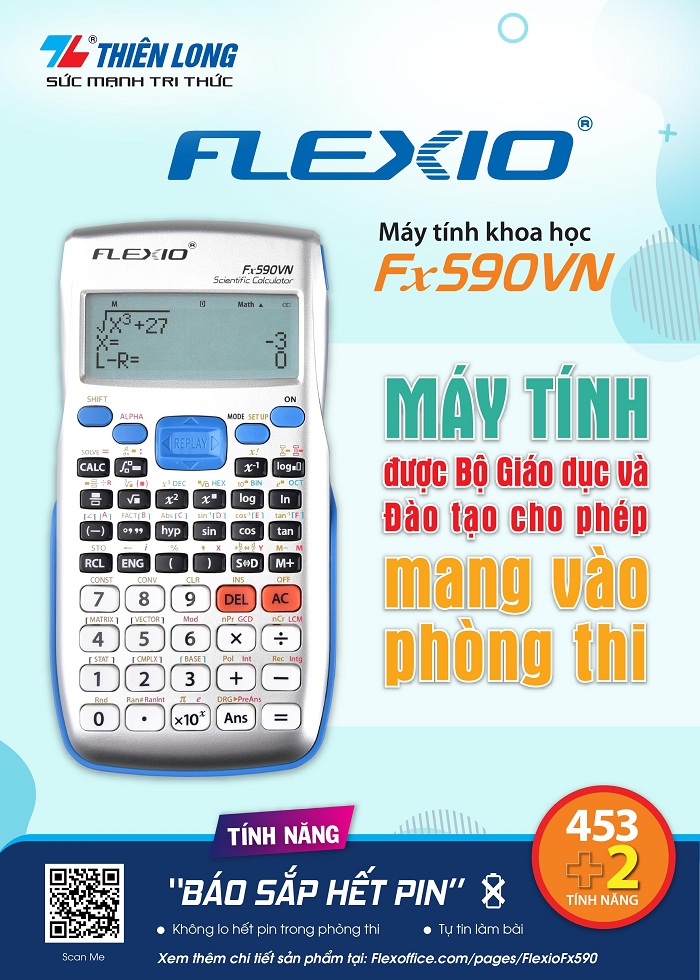 Đối với các thí sinh khối Tự nhiên, máy tính cầm tay là dụng cụ học tập vô cùng quan trọng. Chương trình thi trắc nghiệm hiện nay của Bộ Giáo dục yêu cầu các thí sinh phải xử lý đa dạng câu hỏi, đa dạng đề thi và đưa ra đáp án chính xác chỉ trong thời gian ngắn, do đó 453+2 tính năng vượt trội của máy tính Flexio Fx590VN sẽ giúp các em học sinh tối ưu hóa các thao tác tính toán, nâng cao hiệu suất làm bài.