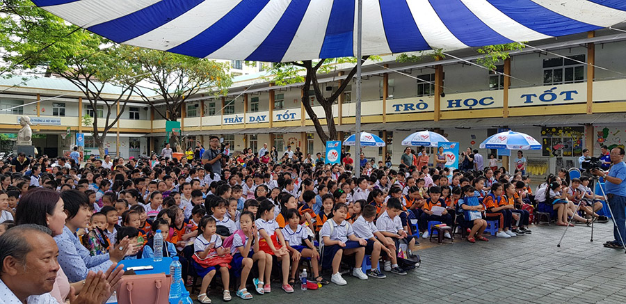 Hơn 400 em học sinh từ các trường Tiểu học trên địa bàn Quận7,TP.HCM tham gia thi ngay sau Lễ phát động.