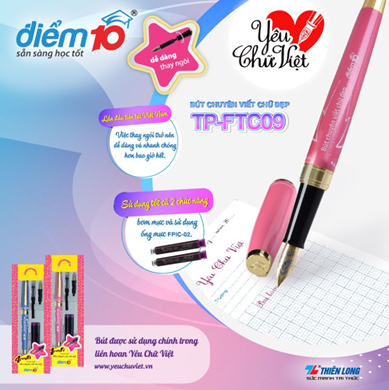 Tại liên hoan, Nhãn hàng Dụng cụ học tâp Điểm 10 của Thiên Long đã giới thiệu đến các em học sinh và phụ huynh bộ sưu tập bút chuyên dùng để luyện viết chữ đẹp nổi bật là sản phẩm bút TP-FTC09. Với thiết kế độc đáo, sử dụng ống mực tháo rời cùng ngòi bút cao cấp có thể thay dễ dàng và nhanh chóng, Thiên Long hy vọng TP-FTC09 sẽ là trợ thủ đắc lực giúp các em học sinh tối ưu trong việc rèn luyện “Nét chữ, nết người”.
