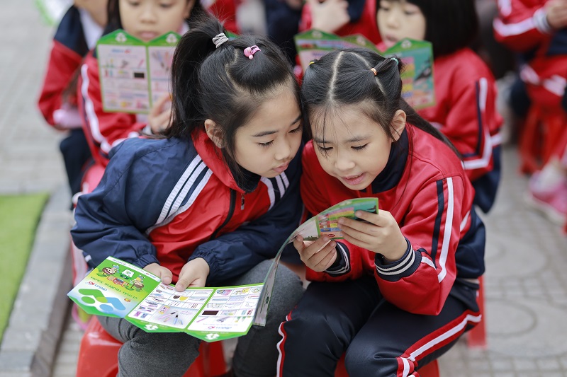 Đặc biệt hơn, qua mỗi điểm trường, Ban Tổ chức còn phát hành cẩm nang phân loại rác thải tại nguồn để nhắc nhớ các em nhận thức và thực hành phân loại rác. Từ quyển cẩm nang này, các em học sinh có thể hiểu rõ hơn tác hại của rác thải với môi trường cũng như mục tiêu và ý nghĩa của chương trình Vì Mái Trường Xanh.